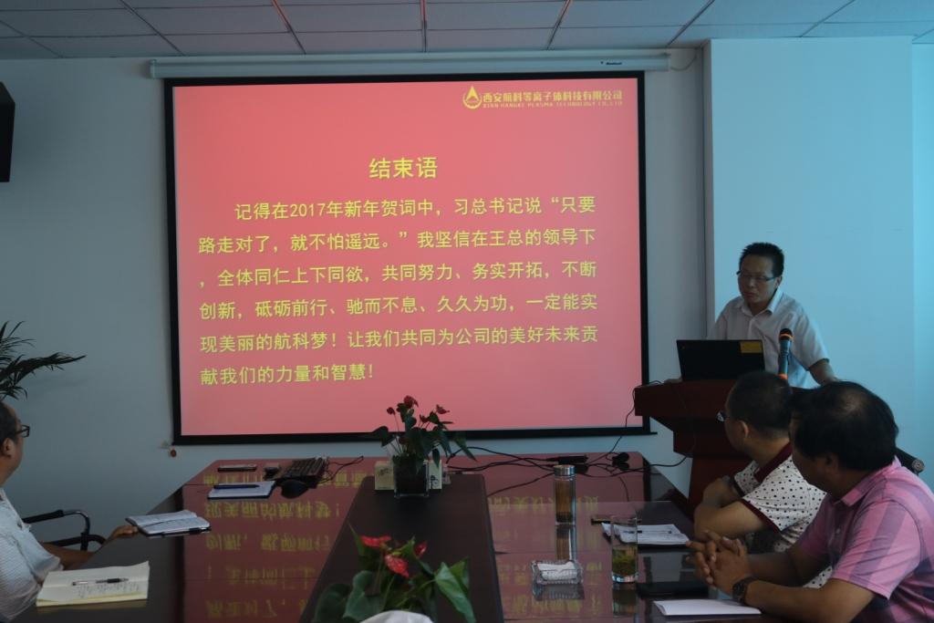 最后董事長(zhǎng)王浩靜做了總結(jié)性的講話,他充分肯定了公司上半年所取得成績(jī),航科人圍繞公司的“1 + 1 + 0.5”產(chǎn)品研發(fā)戰(zhàn)略,在等離子體專業(yè)領(lǐng)域取得的創(chuàng)新性的突破,實(shí)現(xiàn)國(guó)內(nèi)領(lǐng)先;其他領(lǐng)域也實(shí)現(xiàn)了大踏步的邁進(jìn),這一切離不開(kāi)大家的共同努力;展望未來(lái)的152天,王總要求我們堅(jiān)定公司的發(fā)展方向,快速推動(dòng)軍民融合,秉持公司“創(chuàng)新一代 研發(fā)一代 儲(chǔ)備一代 生產(chǎn)一代 服務(wù)一代”的發(fā)展原則,做好新“2.5”,穩(wěn)步促進(jìn)預(yù)研項(xiàng)目;上半年已經(jīng)匆匆而過(guò),他提出一個(gè)創(chuàng)業(yè)型企業(yè)要做什么?作為我們公司,應(yīng)該快速促進(jìn)技術(shù)轉(zhuǎn)化,用有限的資源,做合理的布局,爭(zhēng)取產(chǎn)品的市場(chǎng)化。他希望下半年從組織架構(gòu)和人員配備、管理制度提升、統(tǒng)一思想和優(yōu)勝劣汰、解放思想和適應(yīng)市場(chǎng)發(fā)展、激勵(lì)政策等方面對(duì)公司的管理進(jìn)一步提升;各職能部門應(yīng)主動(dòng)作為,研發(fā)人員團(tuán)結(jié)協(xié)作,實(shí)現(xiàn)航科的跨越。
