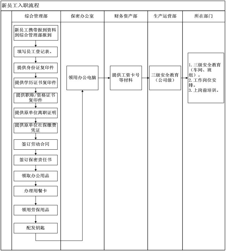2.新員工報到日,綜合管理部根據《新員工入職流程》為其辦理相關事項。